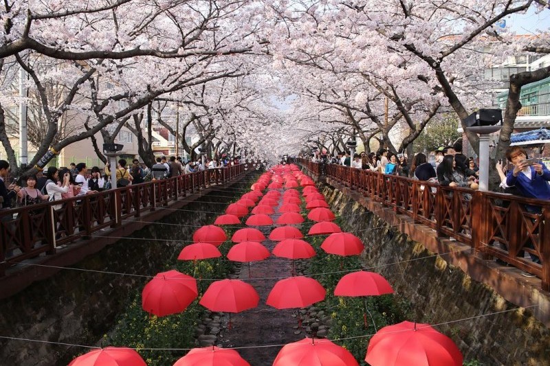 🌸 진해 군항제 (Jinhae Cherry Blossom Festival) 진해 군항제는 매년 봄에 열리는 한국 최대 규모의 벚꽃 축제로, 약 36만 그루 이상의 벚나무가 도시 전역에 피어 장관을 이룹니다. 축제는 진해구 전역